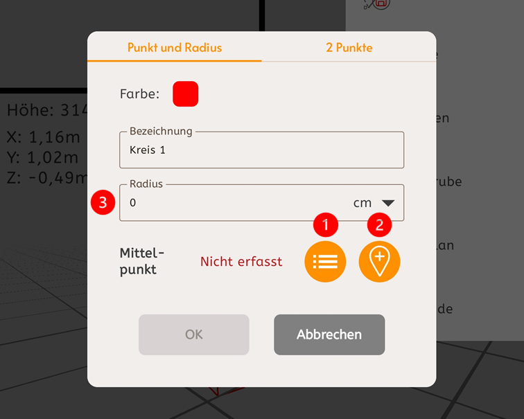 und für den Kreis anschließend einen Radius setzen (3).